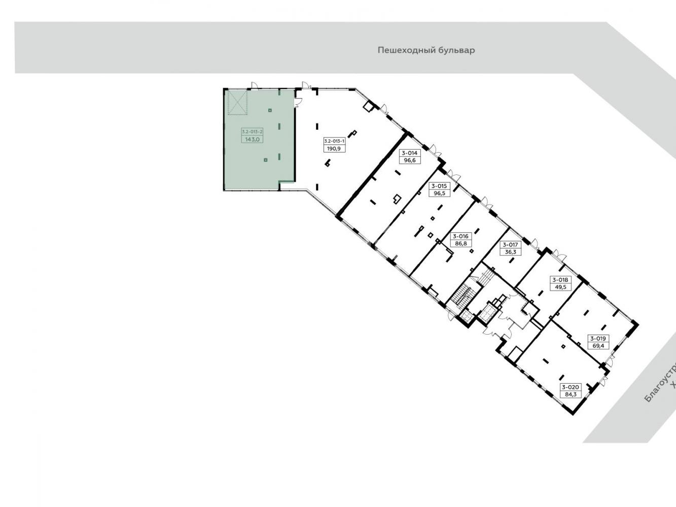 Помещения для бизнеса представлены в разных форматах – от 25 м2 до 2 тыс. м2. Высота потолков от 4 м до 6,35 м. Предусмотрена свободная планировка и возможность объединения с соседними лотами. Характеристики помещений позволяют реализовать любой бизнес-проект.