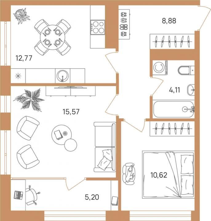 Общая площадь – 57.15 кв.м,